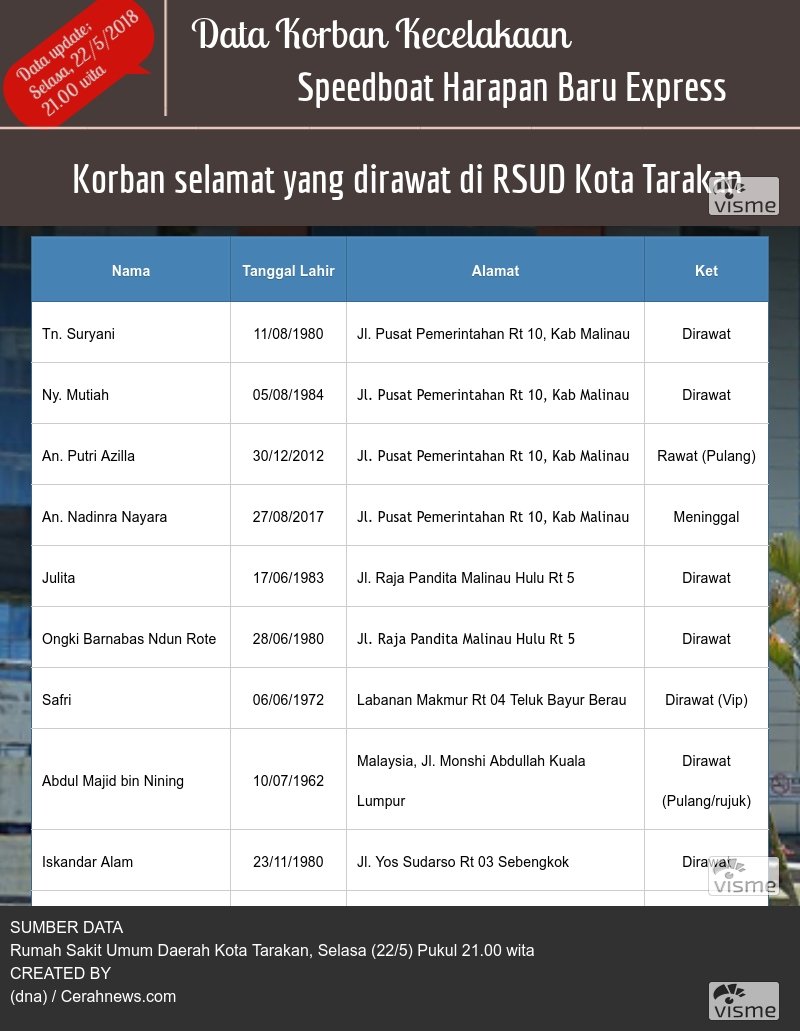 Daftar nama korban kecelakaan speedboat Harapan Baru Express di RSUD Kota Tarakan. Selasa (22/5)